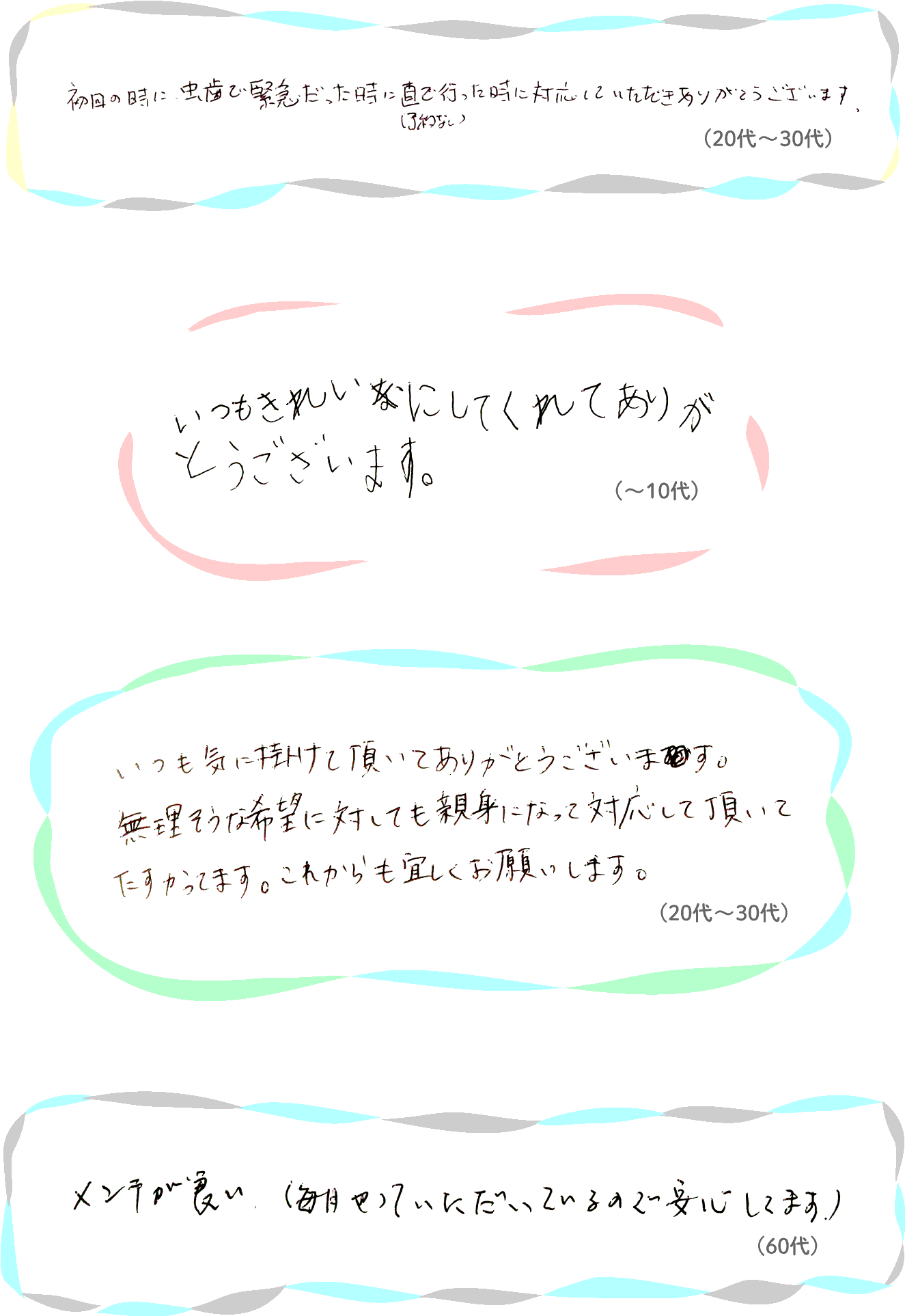 幼い頃から通院して下さりありがとうございます。患者様の成長を見るたびに私たちも頑張ろうと思えます。ずっと通える医院でありつづけますので、どうぞよろしくお願い致します。